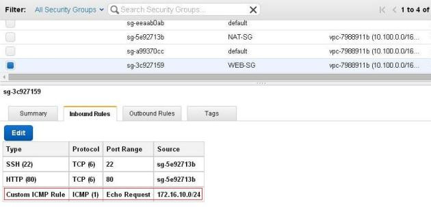 Ping from the Local vpn gateway to the machine on VPC Private subnet (I have Webserver on private subnet with an ip 10.100.20.20).