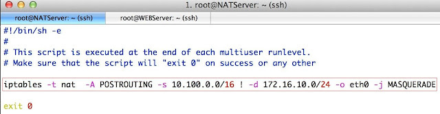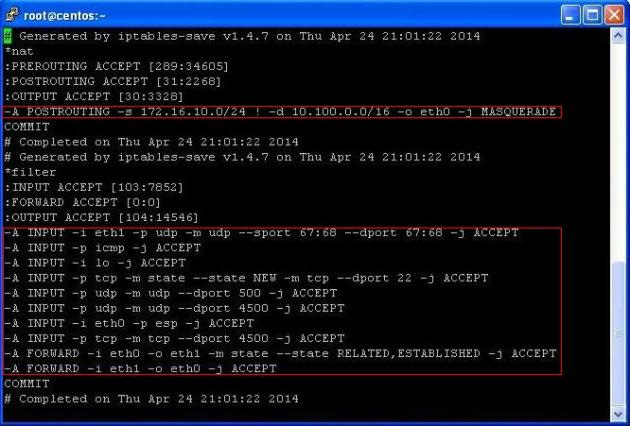 -A POSTROUTING -s 172.16.10.0/24 ! -d 10.100.0.0/16 -o eth0 -j MASQUERADE